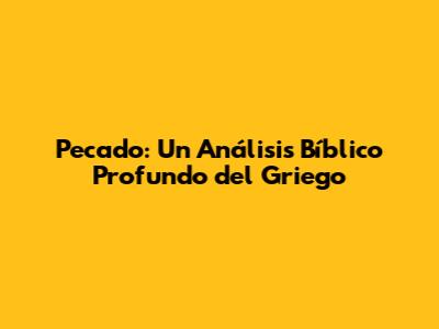 Pecado: Un Análisis Bíblico Profundo Del Griego
