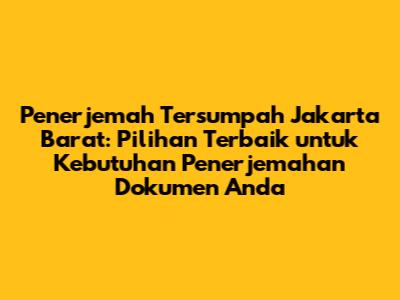 Penerjemah Tersumpah Jakarta Barat: Solusi Terpercaya Untuk Kebutuhan Dokumen Anda