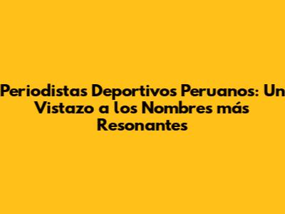 En el panorama del periodismo deportivo peruano, hay figuras que brillan con luz propia. Son esos periodistas deportivos peruanos que, con su trabajo y dedicaci贸n, se han ganado el respeto y la admiraci贸n del p煤blico. Pero, 驴qui茅nes son exactamente? A continuaci贸n, les presentamos algunos nombres clave que han marcado una diferencia en la forma en que consumimos el deporte en el Per煤.