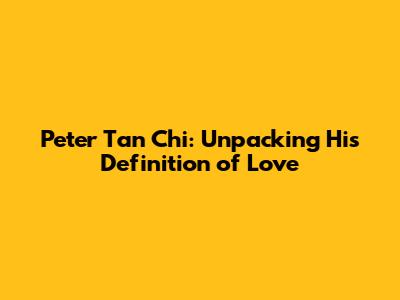 Peter Tan Chi: Unpacking His Definition Of Love