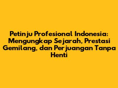Petinju profesional Indonesia telah menorehkan sejarah panjang dan membanggakan dalam dunia olahraga tinju. Dari ring-ring lokal hingga panggung dunia, mereka telah menunjukkan semangat juang yang luar biasa dan dedikasi yang tak kenal lelah. Artikel ini akan membahas secara mendalam mengenai para petinju kebanggaan Indonesia, menggali sejarah mereka, menyoroti prestasi gemilang yang telah diraih, dan mengungkap perjuangan yang mereka hadapi dalam mengejar impian.