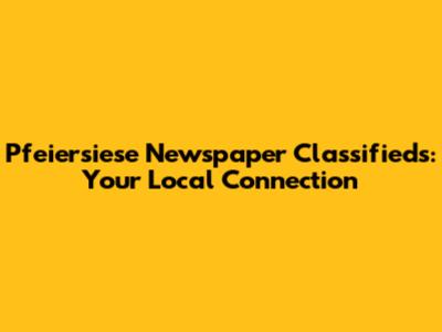 Pfeiersiese Newspaper Classifieds: Local Listings