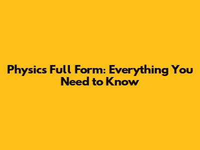 Physics Full Form: Everything You Need To Know