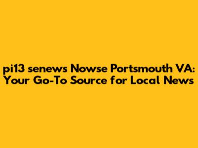 Hey guys! Are you looking to stay informed about what's happening in Portsmouth, Virginia? Look no further! In this article, we're diving deep into pi13 senews Nowse, your premier source for all things local in Portsmouth. We'll explore what makes it stand out, how it keeps you connected, and why it's essential for every resident. Understanding local news is super important. It keeps us all in the loop about what's going on right in our neighborhoods, from city council decisions to community events. Local news sources like pi13 senews Nowse play a crucial role in keeping us informed and engaged.