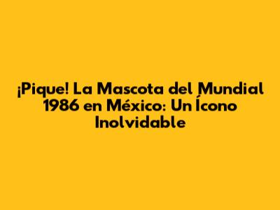 ¡Pique! La Mascota Del Mundial 1986 En México: Un Ícono Inolvidable