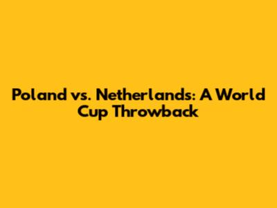 Poland Vs. Netherlands: A World Cup Throwback