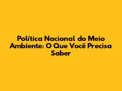 O Que é a Política Nacional do Meio Ambiente?