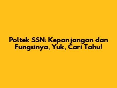 Poltek SSN: Kepanjangan Dan Fungsinya