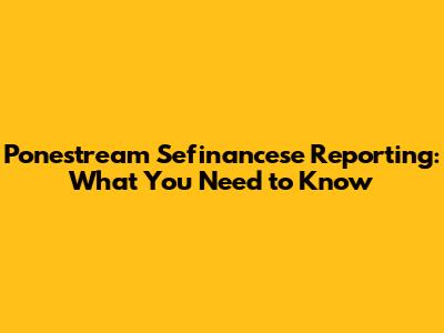 Ponestream Sefinancese Reporting: What You Need To Know