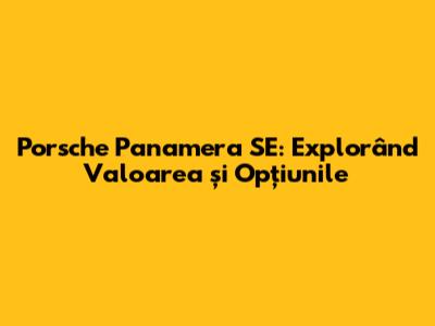 Porsche Panamera SE: Explorând Valoarea și Opțiunile