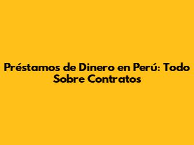 Préstamos De Dinero En Perú: Todo Sobre Contratos