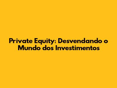 Private Equity: Desvendando O Mundo Dos Investimentos