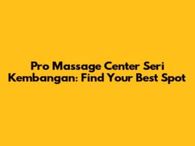 Pro Massage Center In Seri Kembangan: Find Your Best Spot
