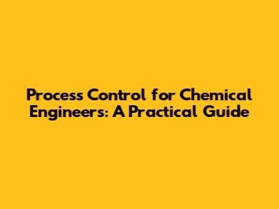 Process Control For Chemical Engineers: A Practical Guide