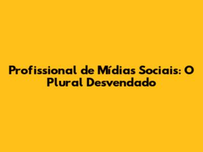 Profissional De Mídias Sociais: O Plural Desvendado