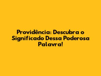 Providência: Descubra O Significado Dessa Poderosa Palavra!