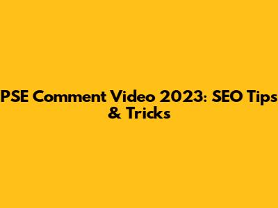 PSE Comment Video 2023: SEO Tips & Tricks