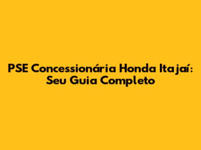 PSE Concessionária Honda Itajaí: Tudo O Que Você Precisa Saber