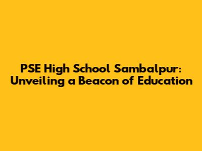 PSE High School Sambalpur: A Comprehensive Guide