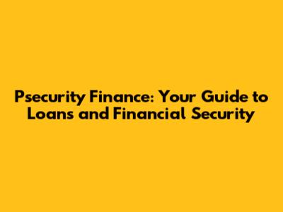 Psecurity Finance: Your Guide To Loans And Financial Security