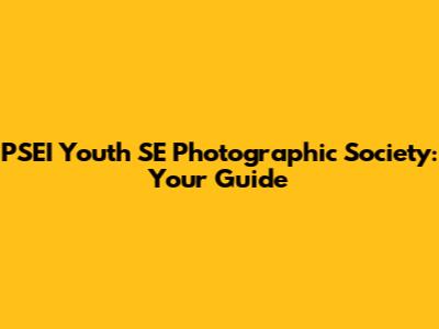 PSEI Youth SE Photographic Society: Your Guide