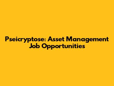 Pseicryptose: Asset Management Job Opportunities