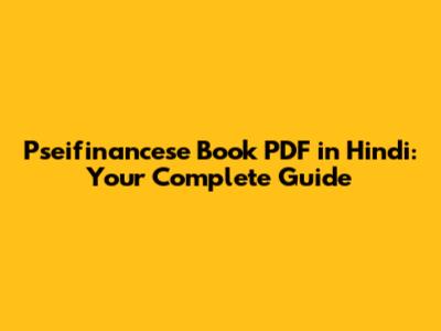 Pseifinancese Book PDF In Hindi: Your Complete Guide