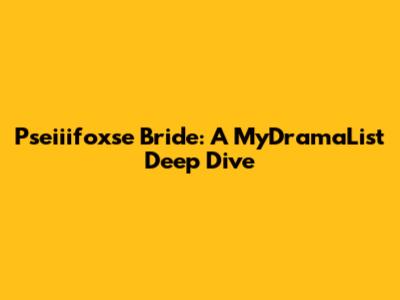 Hey guys, let's talk about Pseiiifoxse Bride! If you're a fan of K-dramas, chances are you've stumbled upon MyDramaList, the go-to platform for tracking, reviewing, and discovering all things Korean television. Today, we're diving deep into a specific drama, Pseiiifoxse Bride, and exploring what makes it a hot topic on MyDramaList. We'll break down its appeal, why people are buzzing about it, and what you can expect if you decide to add it to your watch list. Get ready, because we're about to unpack everything you need to know about this particular gem, straight from the MyDramaList community's perspective. So, grab your snacks, settle in, and let's get started on this drama exploration!