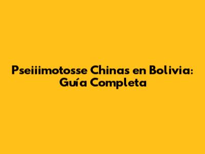 Pseiiimotosse Chinas En Bolivia: Guía Completa