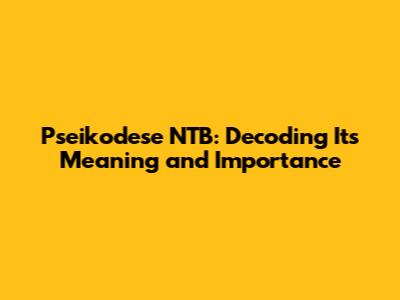 Pseikodese NTB: Unveiling The Meaning And Significance