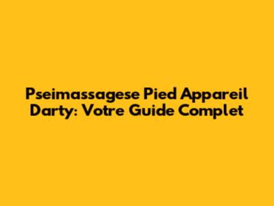 Pseimassagese Pied Appareil Darty: Guide Complet