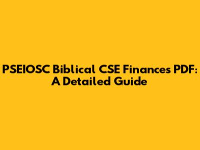 PSEIOSC Biblical CSE Finances PDF: A Detailed Guide