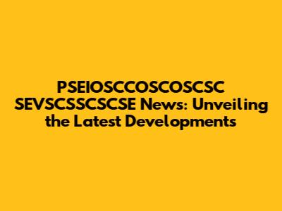 Recent Developments in PSEIOSCCOSCOSCSC SEVSCSSCSCSE: What You Need to Know