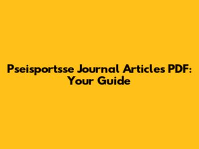 Pseisportsse Journal Articles PDF: Your Guide