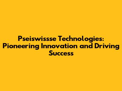 Pseiswissse Technologies: Unveiling Innovation & Success