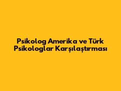 Psikolog Amerika Ve Türk Psikologlar Karşılaştırması