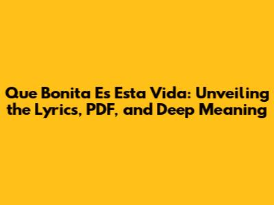 Que Bonita Es Esta Vida: Lyrics, PDF, And Meaning Explained