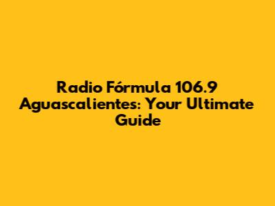 Radio Fórmula 106.9 Aguascalientes: Your Ultimate Guide