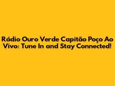 Are you looking to connect with the heart and soul of Capitão Poço? Look no further! Rádio Ouro Verde brings you the vibrant sounds and local news directly to your ears, wherever you are. This comprehensive guide will tell you everything you need to know about tuning in to Rádio Ouro Verde Capitão Poço ao vivo and staying connected with your community.