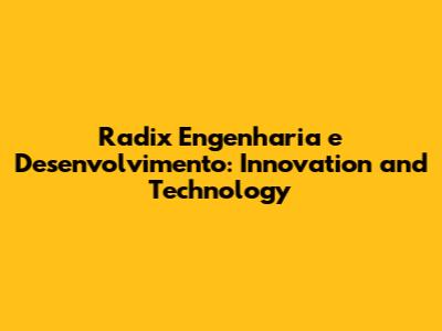 Radix Engenharia E Desenvolvimento: Innovation And Technology
