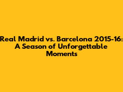 Real Madrid Vs. Barcelona 2015-16: Epic Season Showdown