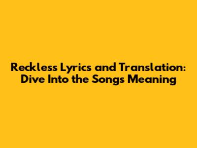 Reckless Lyrics And Translation: Dive Into The Song's Meaning