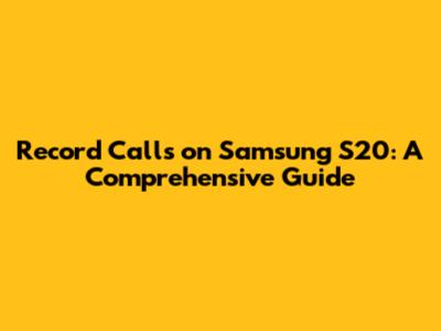 Record Calls On Samsung S20: A Comprehensive Guide