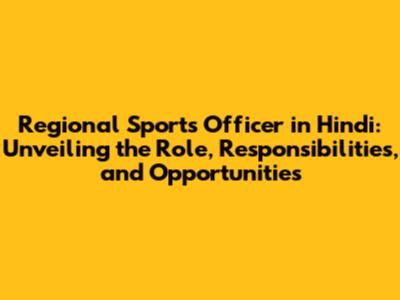 Regional Sports Officer In Hindi: Job, Salary & More!