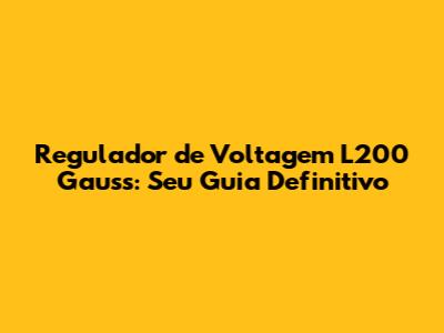 Regulador De Voltagem L200 Gauss: Guia Completo