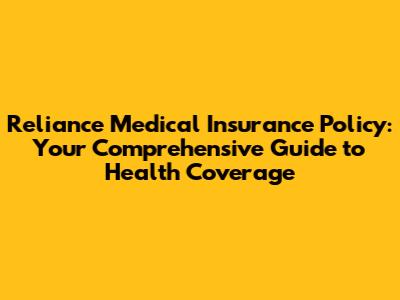 Reliance Medical Insurance: Your Guide To Health Coverage