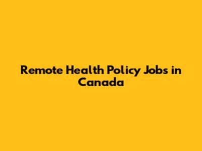 Remote Health Policy Jobs In Canada