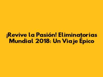¡Revive La Pasión! Eliminatorias Mundial 2018: Un Viaje Épico