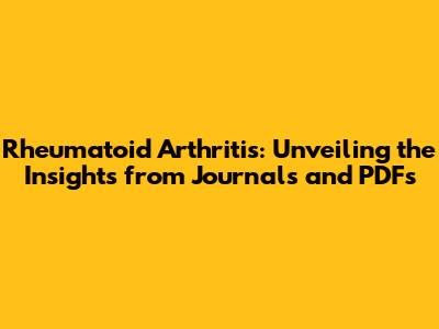 Hey everyone! Let's dive into something super important today: Rheumatoid Arthritis (RA). We're going to explore this condition, and I'll walk you through what the journals and PDFs say about it. RA can be a real pain, literally, but understanding it is the first step to managing it. Let's get started, shall we?