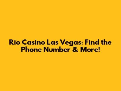 Rio Casino Las Vegas: Find The Phone Number & More!